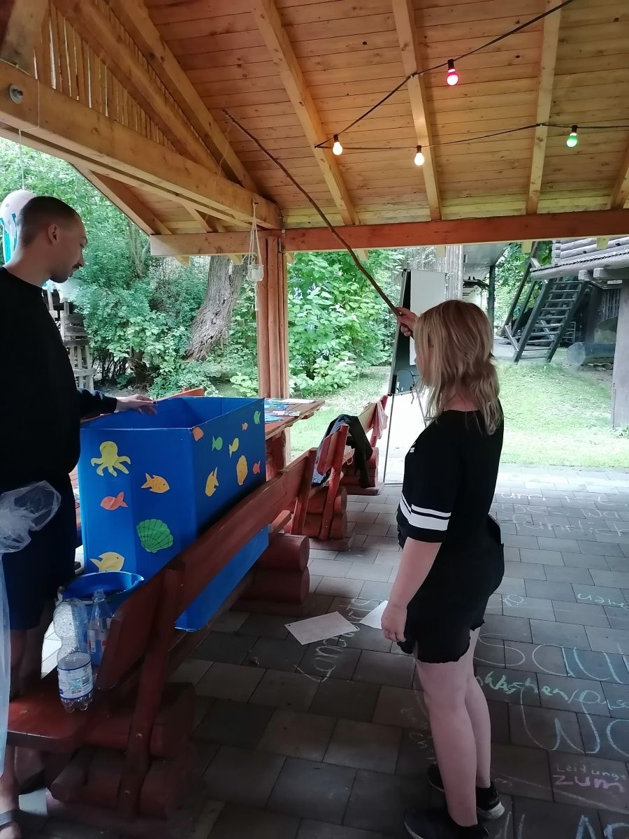 Am Nachmittag gibt es zwei verschiedene Angebote – je nach Wetter und Interesse. Das können z. B. eine Wasserschlacht, Perlenarmbänder basteln, Geländespiele, Impro-Theater, Karaoke oder ein Ausflug an den Badesee sein. Auch thematische Aktionen passend zum Wochenthema finden hier statt.